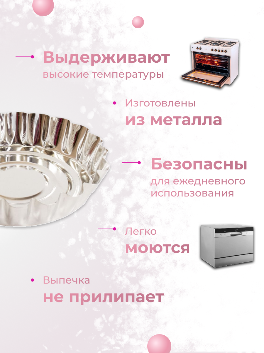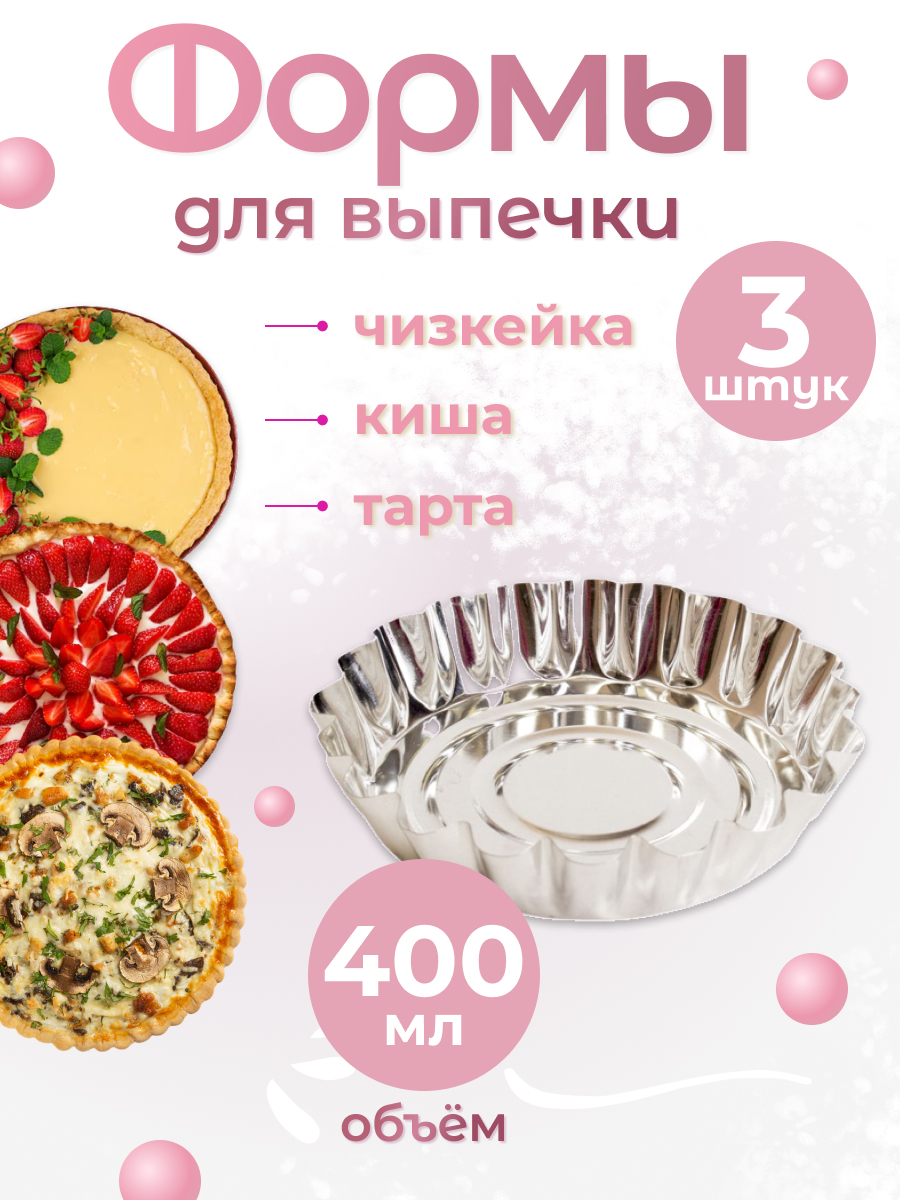 Обожаете баловать себя и своих близких вкусной и полезной выпечкой? В таком случае наши формы для выпечки идеально подойдут вам. С помощью этого набора форм вы сможете приготовить разнообразную выпечку. Торт, пирог, чизкейк, киш и многое другое можно приготовить с помощью наших форм для выпечки! Они также идеально подходят для подачи индивидуальных порций овощных или фруктовых салатов, мороженого, соусов, подливок, запеканок и холодца. У нас представлено несколько наборов: по 3 и 12 формочек, благодаря чему вы сможете приготовить сразу большое количество разнообразных блюд одновременно Наша форма для чизкейка изготовлена из экологически безопасного и высококачественного металла, поэтому они не подвержены царапинам, поломкам и сохранят свою идеальную форму на протяжении длительного времени, а также безопасны для ежедневного использования. Вам достаточно промыть их под водой, чтобы вернуть им прежний вид, их также можно мыть в посудомоечной машине. Наши формы для выпечки придадут вашим шедеврам оригинальную форму. Благодаря особому материалу, ничего не пригорает и не прилипает, а выпечка легко отделяется от формы. Металл не впитывает неприятные запахи и не накапливает вредные вещества, поэтому каждая ваша выпечка будет идеальной. Кроме того наши формы для выпечки выдерживают высокие температуры и имеют универсальный размер, что позволяет экономить место на кухне. Набор форм для выпечки станет отличным подарком для мамы, бабушки, тёти, сестры или второй половинки на день рождения, 8 марта, 14 февраля или новый год. Перед первым использованием вымойте формы для выпечки кекса с небольшим количеством моющего средства, высушите, смажьте тонким слоем масла. Выпекайте любимые кексы с удовольствием, радуйте своих близких и друзей, приятного аппетита!